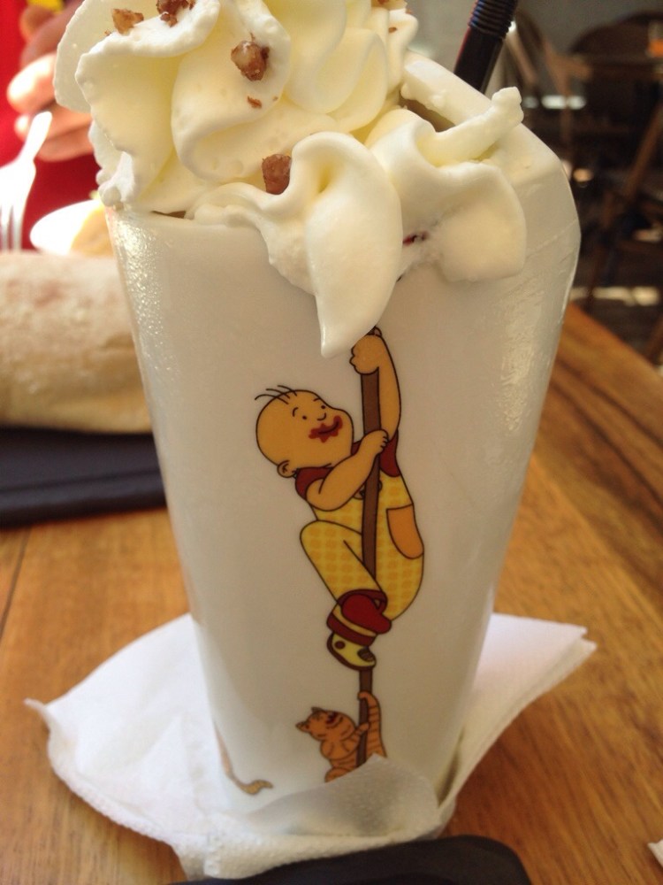 Rusla litt på Sderot Rotschild før vi fant ut at vi måtte få i oss mat. Max Brenner ble neste stopp. Avokado og tahilin(?) til forrett, omelettsandwich med pommes frites, belgisk sjokolade milkshake (mektig!). + en liten dessert.