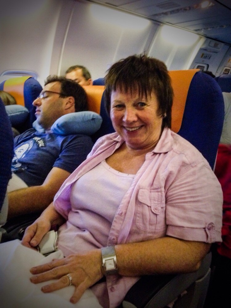Vel ombord på flyet. Merker at jeg begynner å bli litt segen.