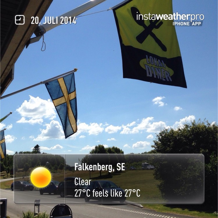 Vi kjørte videre på E6 mot Norge. Tok tid til en liten lunsj på en kafé langs veien. Jeg hadde gubbens macke, som var skive med salat og egg samt ei skive falukorv på toppen. Det var godt.