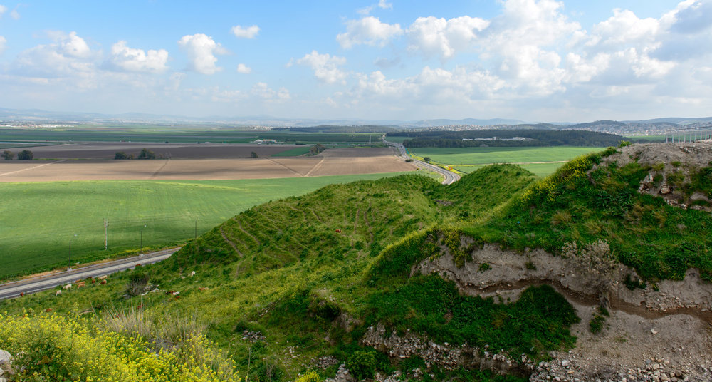 Megiddo (Hebrew: מגידו; Arabic: مجیدو, Tell al-Mutesellim, “The Tell of the Governor”) is an ancient city whose remains form a tell (archaeological mound), situated in northern Israel near Kibbutz Megiddo, about 30 km south-east of Haifa. Megiddo is known for its historical, geographical, and theological importance, especially under its Greek name Armageddon. During the Bronze Age, Megiddo was an important Canaanite city-state and during the Iron Age, a royal city in the Kingdom of Israel. Excavations have unearthed 26 layers of ruins, indicating a long period of settlement. Megiddo is strategically located at the head of a pass through the Carmel Ridge overlooking the Jezreel Valley from the west. Evangelical Christians believe it will be the site of the final battle between Jesus Christ and Satan, as outlined in the Book of Revelation. The site is now protected as Megiddo National Park and is a World Heritage Site. –Wikipedia