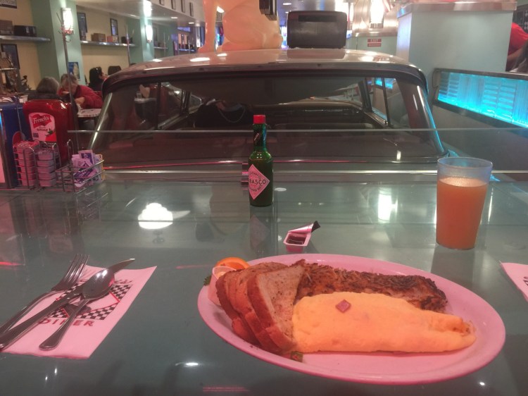 Lazy start today. Walking up to the friendly neighbor diner. Crowd again today. Were placed behind the car…
