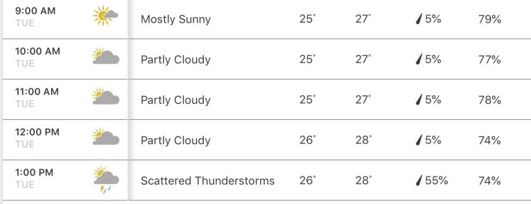 Soo, we should probably stay inside after 12pm… as there is quite high chance of rain.