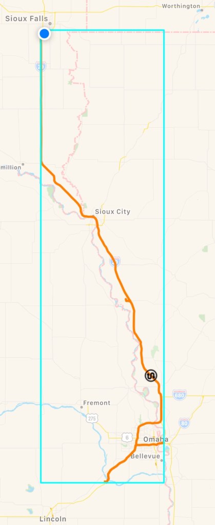 Started in Council Bluff, IA. And ended in Sioux Falls, SD. Dinner at Texas Roadhouse. Ready for lunch appointment tomorrow noon.
