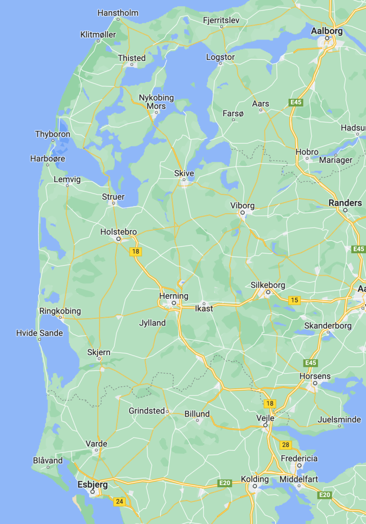 Drove along the coast to Lemvig, before heading North-East to Aalborg.