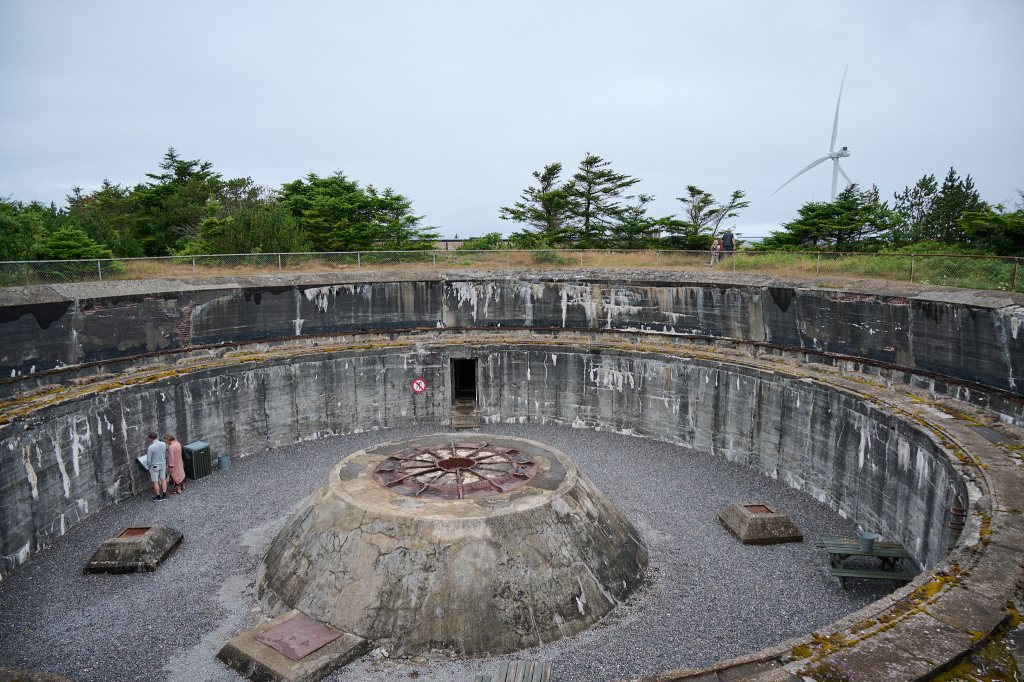 The battery was built in 1941 together with a similar battery at Kristiansand in Norway, blocking the entrance to the Skagerrak, to keep the English fleet out. The battery consisted of four large 38cm guns, each of which had a weight of 110 tons. The guns could fire a distance of 55km… almost halfway to Norway!
