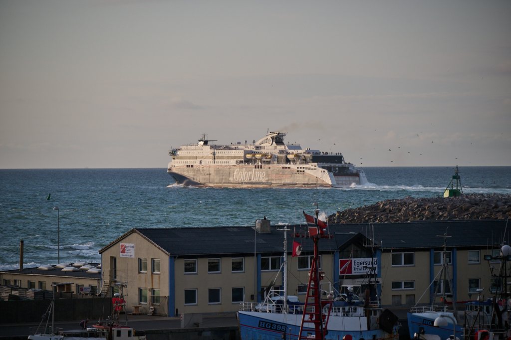 Were not able to find a hotel online, so we drove to a hotel and hoped we would find a room. And indeed we got a large room at Seafront Hotel. Had dinner at the nearby Hirtshals kro. The weather was nice, so we walked about and sat watching the ferries come and go.